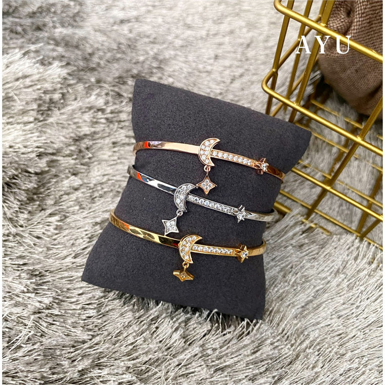 AYU Gelang Emas - Gold And Pave Bamboo Bangle 17k Rose Gold