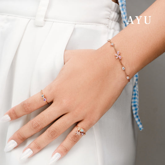 AYU Gelang Emas - Magical Butterfly Chain Bracelet 17k Rose Gold