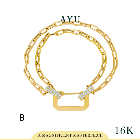 AYU Double Layer Paper Clip And Bling Beads Bracelet 16K Yellow Gold