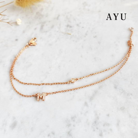 AYU GOLD INITIAL CHAIN BRACELET 17K ROSE GOLD