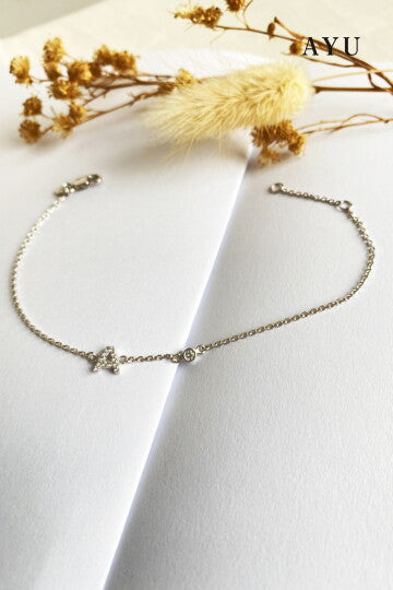 AYU Pave Initial With Bezel Chain Bracelet 17k White Gold