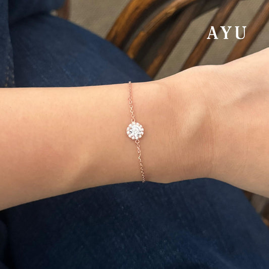 AYU Gelang Emas-Round Solitaire With Halo Chain Bracelet 17k Rose Gold