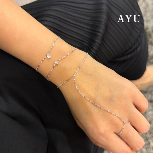 AYU Gelang Emas - Mini Solitaire Double Layer Hand Chain Bracelet 17k White Gold