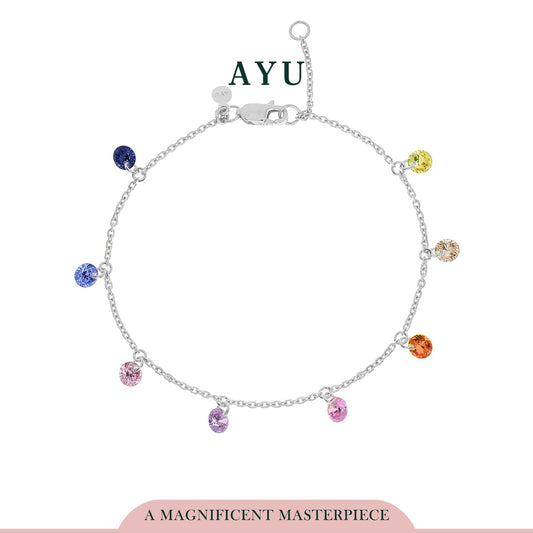 AYU Gelang Emas Korea - Pastel Rainbow Candy Pop Chain Bracelet 17K White Gold