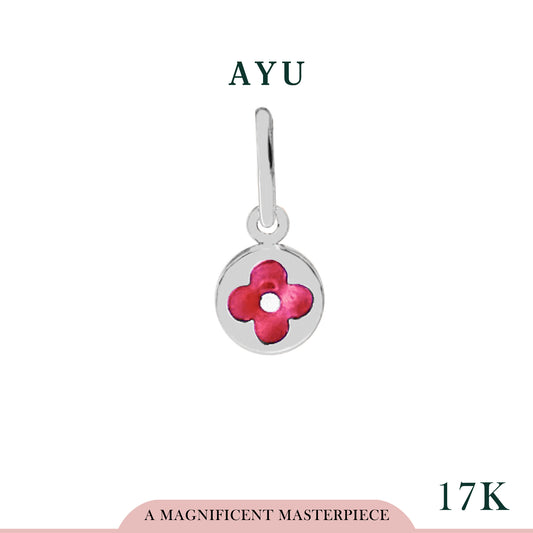AYU Liontin Emas - Enamel Clover On Coin Pendant 17K White Gold