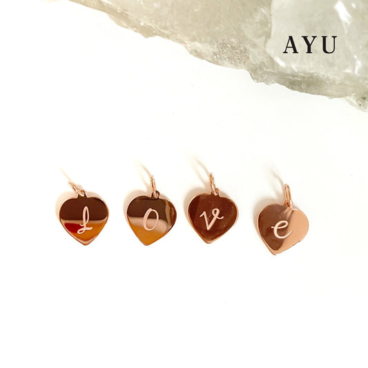 AYU Liontin Emas - Heart Initial Pendant 17K Rose Gold