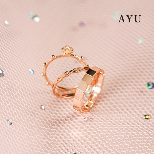 AYU Cincin Emas - Clover Bling Stack 17k Rose Gold