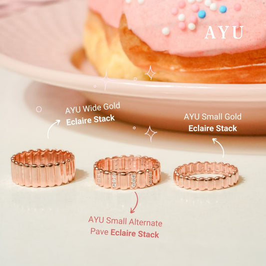 AYU Cincin Emas - Wide Gold Eclaire Stack 17K Rose Gold