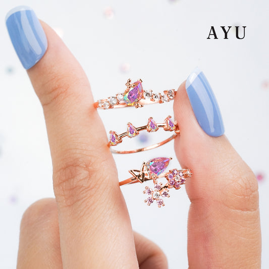 AYU Cincin Emas - Magical Teardrop Constellation Ring 17K Rose Gold