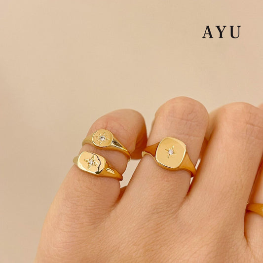 AYU Cincin Emas - Rectangle Star Signet Ring 17K Rose Gold