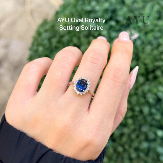 AYU Cincin Emas - Oval Glam Royalty Setting Ring Royal Blue 17k White Gold