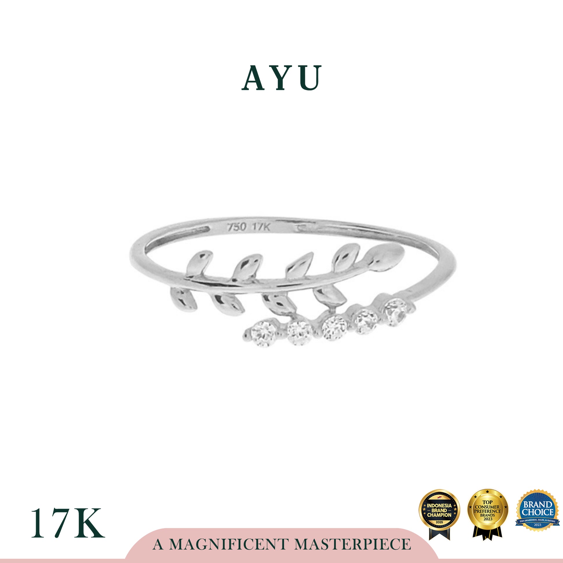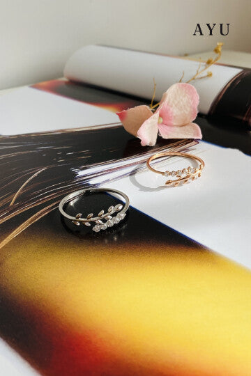 AYU Angel Vine And Single Prong Wrap Ring 17K White Gold