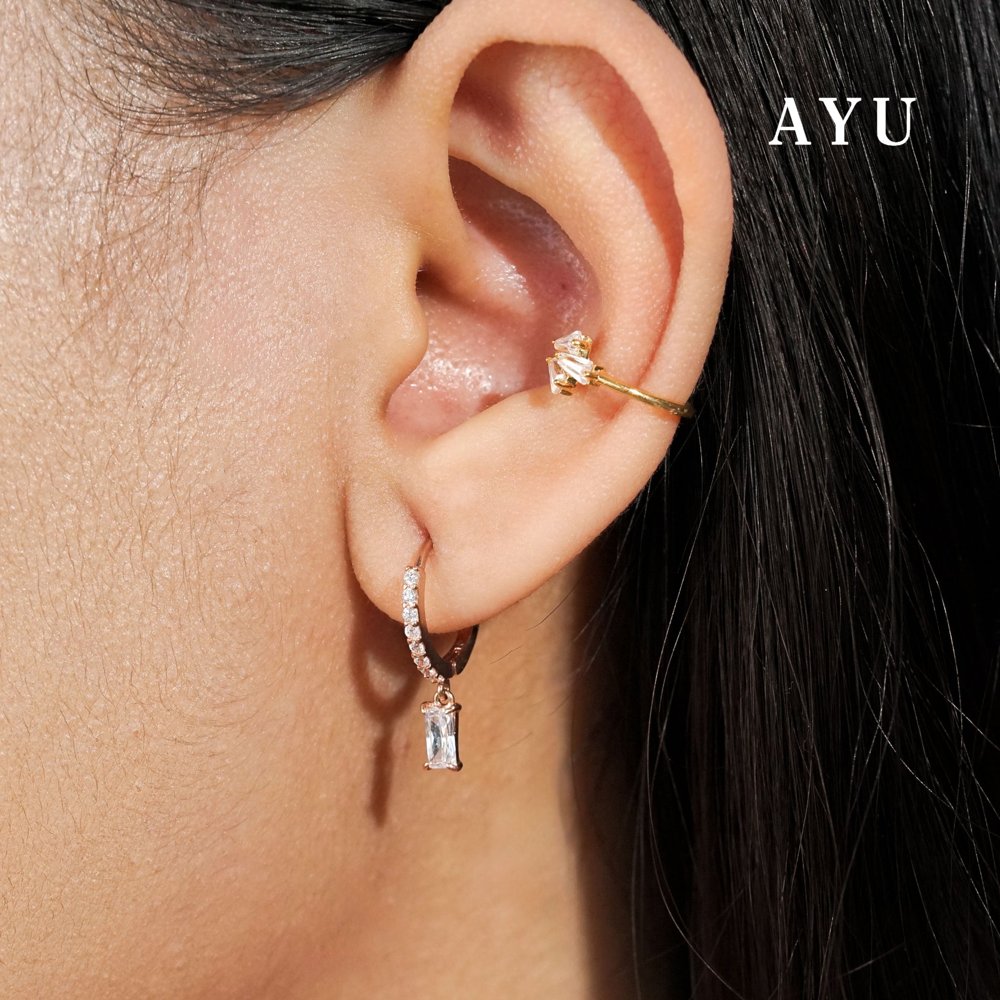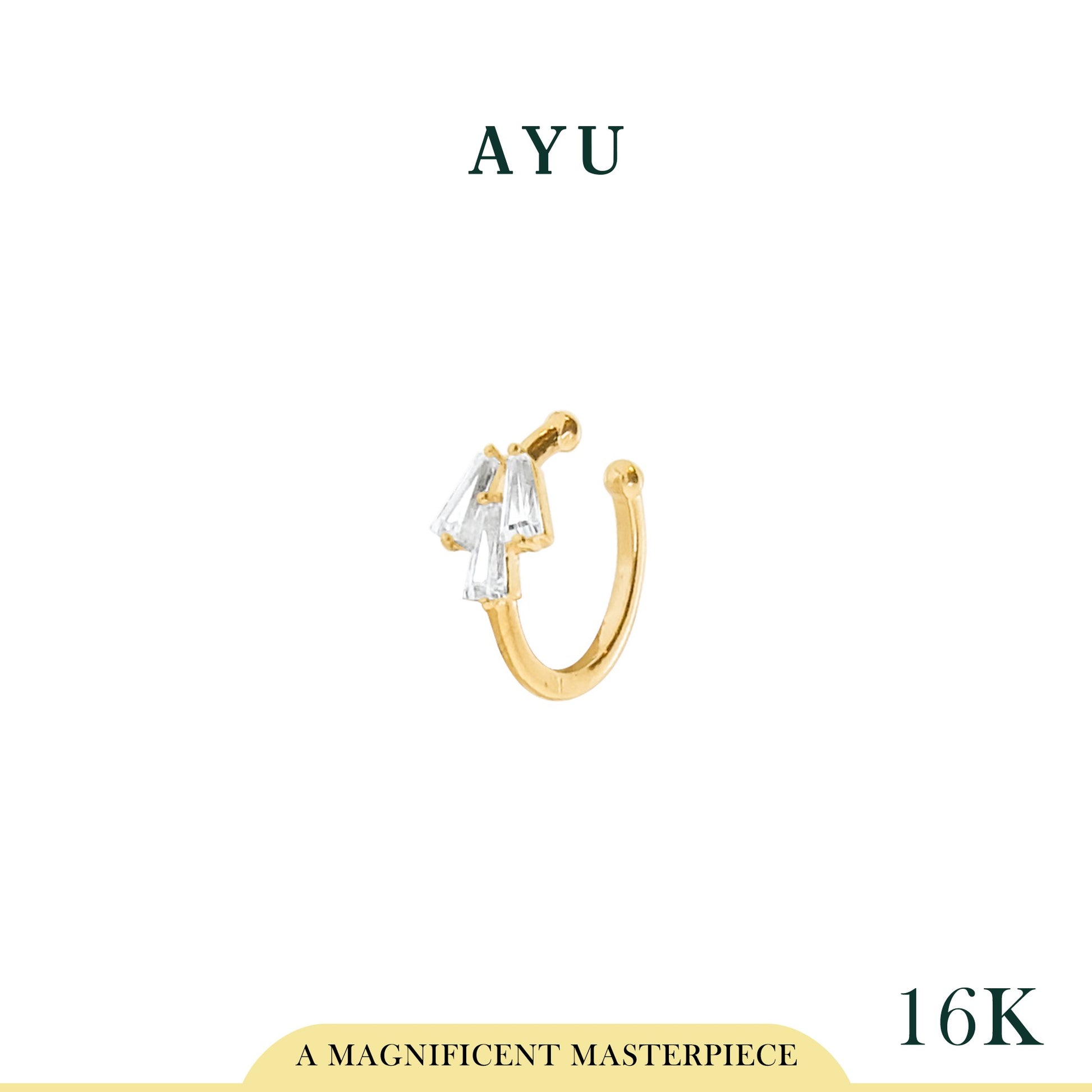 AYU Anting Emas - 3 Baguette Earcuff 16k Yellow Gold