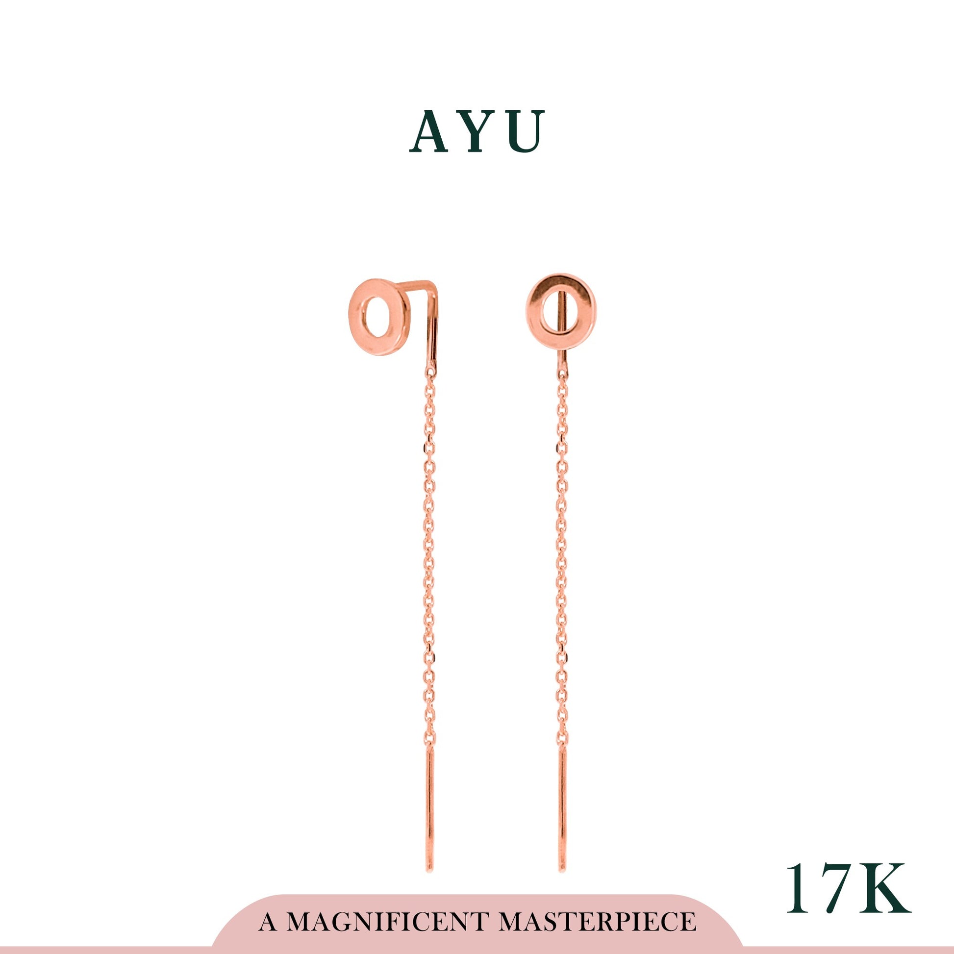AYU Anting Emas - Initial Thread Earrings 17k Rose Gold