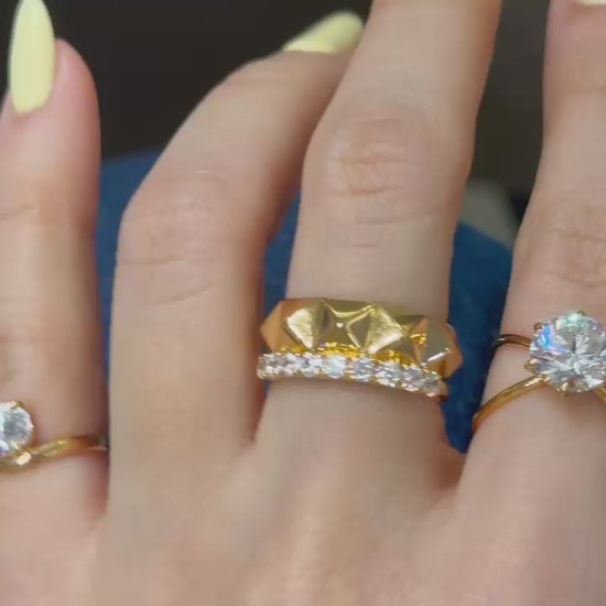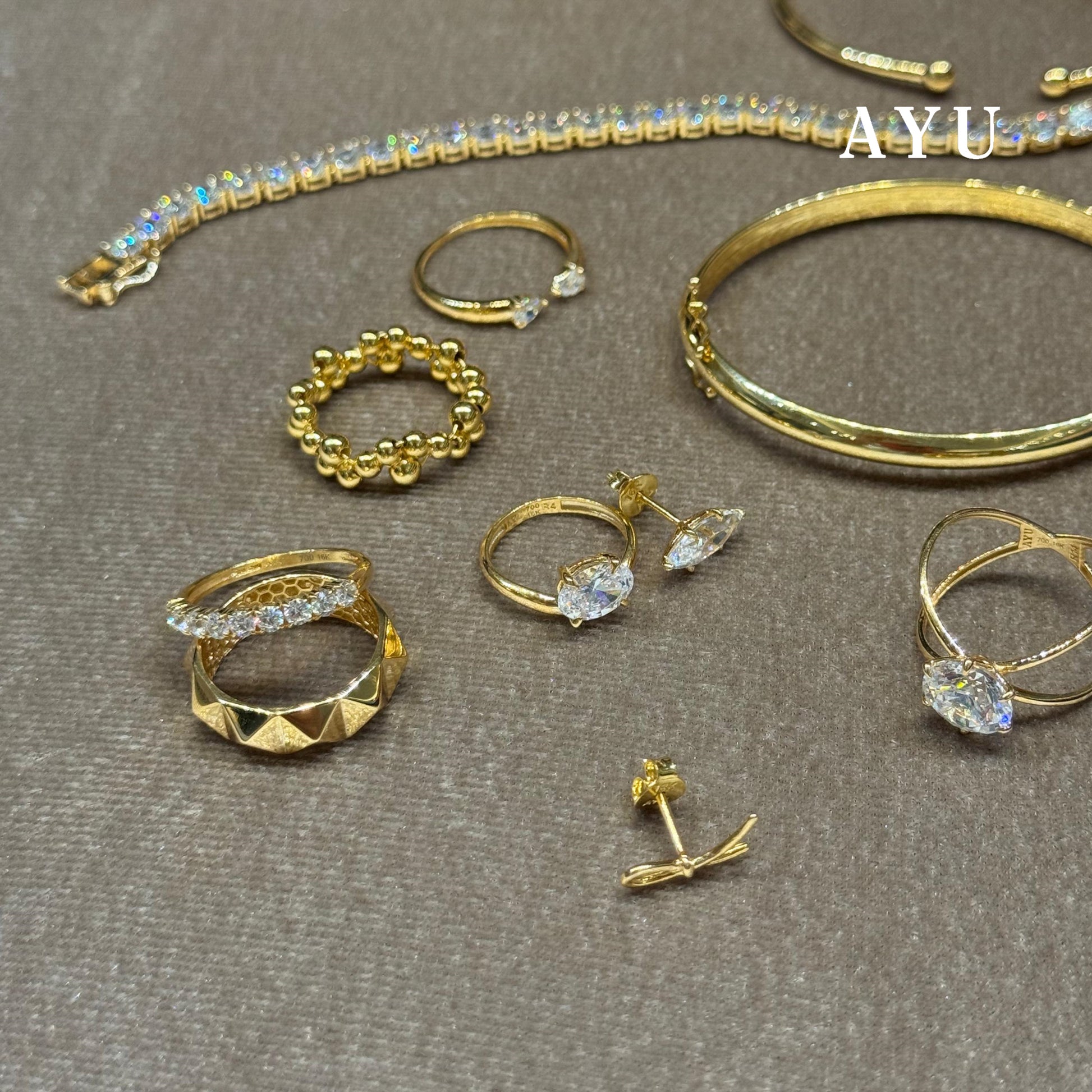 AYU Cincin Emas - Bold Stud Stack Ring 16k Yellow Gold