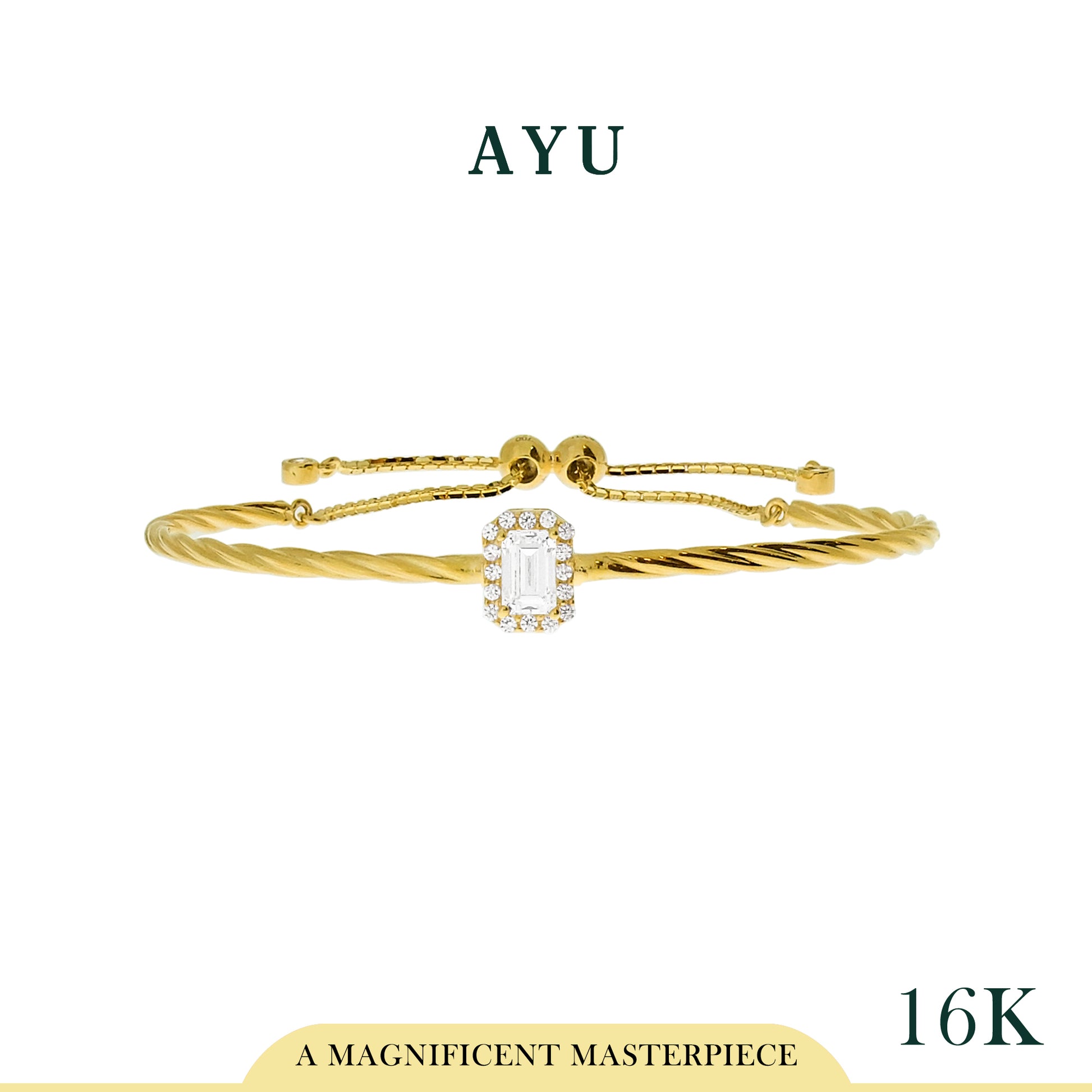 AYU Gelang Emas-Emerald Halo Twist Bolo Bangle 16K Yellow Gold